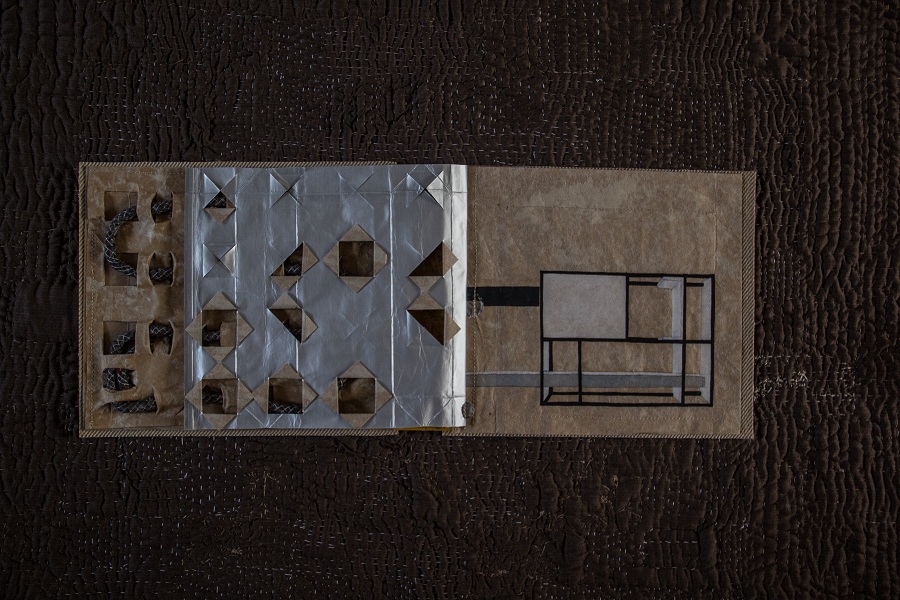 En la obra de Paula hay una reivindicación de los objetos como portadores de historias y memorias. Ante la desaparición de los cuerpos, y en una cultura donde todo pareciera desaparecer, volverse liviano y desvanecerse, esto es un gesto de resistencia. Un gesto de resistencia que se hace cargo no solo del presente de las cosas, sino de su pasado y de sus futuros posibles. Retazos de telas recicladas, tejeduras y libros confeccionados con cajas de tetra pack así nos lo señalan.