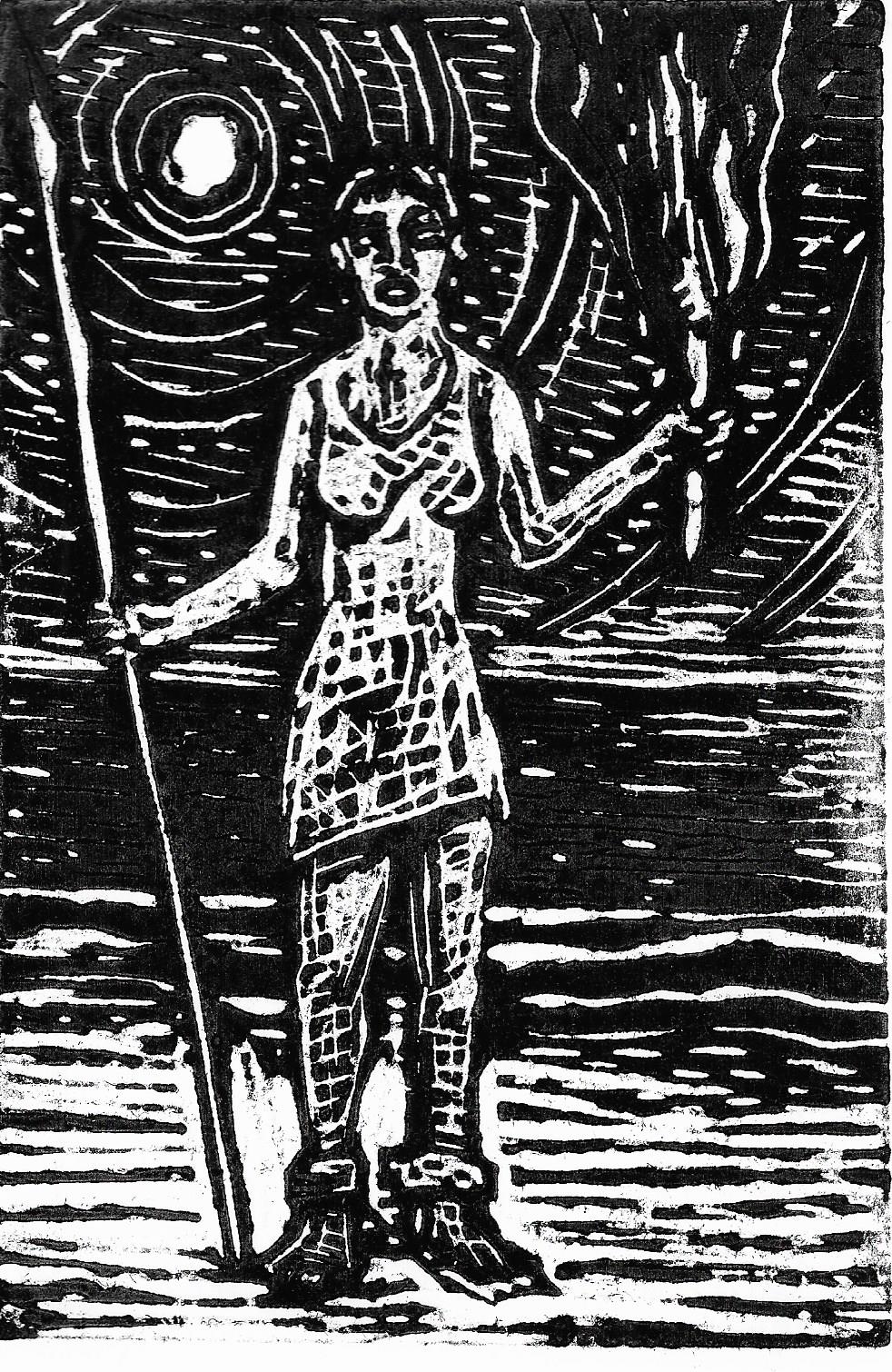 En seguida la virgen vendada se levantó y penetró bajo la tierra, los dientes descubiertos.