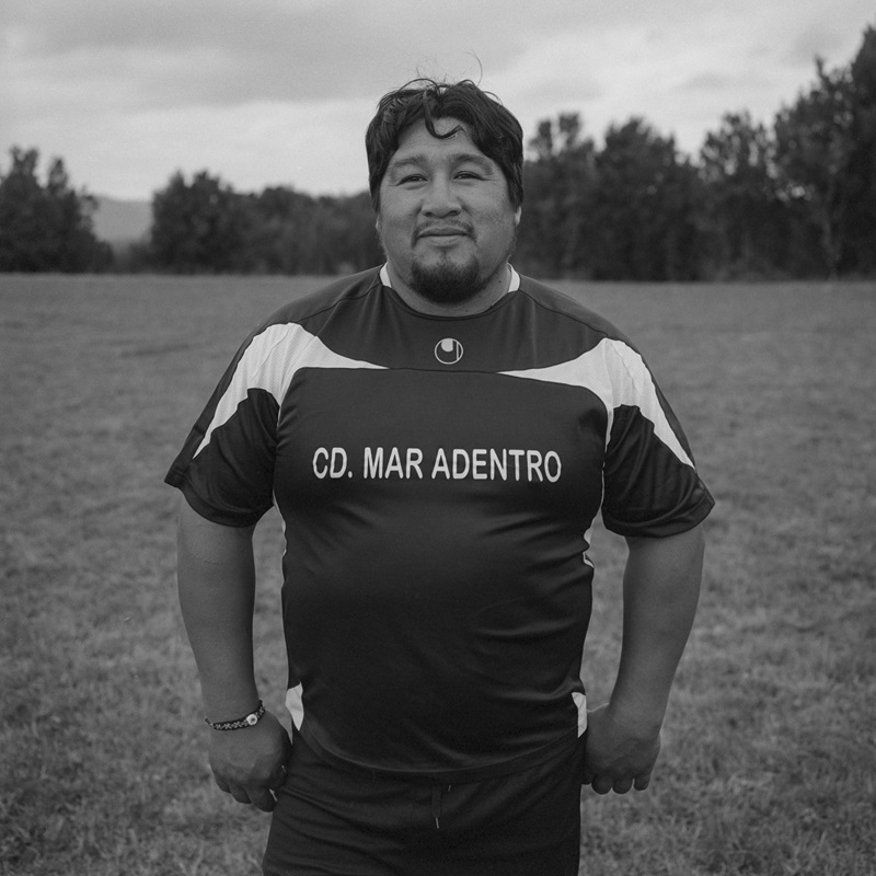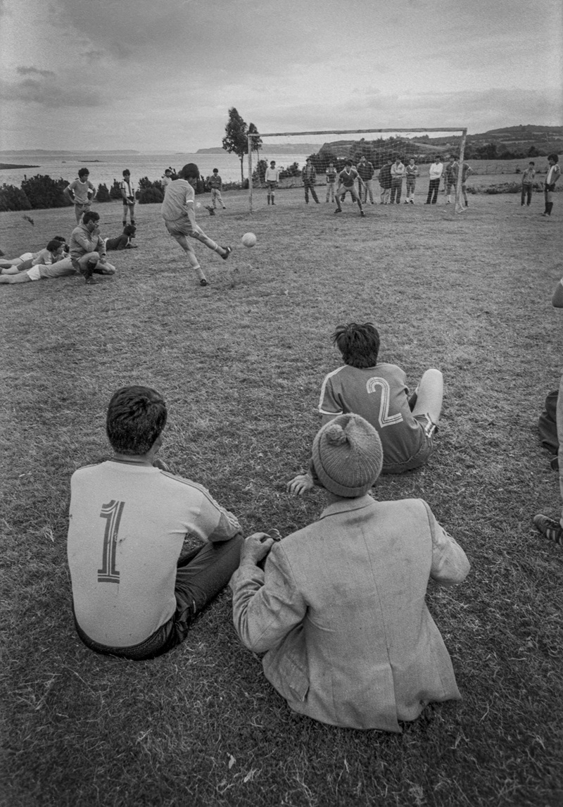 JG: Así es. Estaba, por ejemplo, Moroco, el padre de una familia, que era muy sociable. Aún lo es. Todo un hombre orquesta: organizaba y mandaba a los del club, era jugador de fútbol. De hecho, está en las fotos y ni siquiera con pantalones cortos. Después se ponía a preparar el curanto. Y ese episodio entre festivo, deportivo y familiar me pareció muy interesante, muy atractivo, muy amoroso. A pesar de que a veces se carga de violencia, pero es como familiar. Bueno, como son todas las familias, a veces disfuncionales, a veces violentas, a veces amables, a veces tiernas. El torneo es una especie de ópera en torno al deporte, porque es todo un día que se está jugando y hueveando alrededor de la cancha.