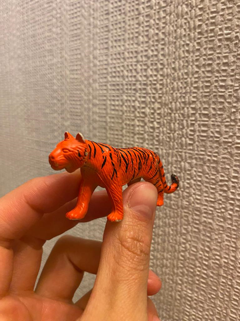 Lo tomé con rapidez del suelo, para que no se viera que me estaba llevando algo que no era mío. Lo metí al bolsillo y me fui a casa, con risa culposa, sabiendo que esa infancia lo debe haber extrañado, aunque fuera un poco, y eso me gusta. Mal ensamblado, con restos sueltos de plástico que se escaparon del molde y sin una mirada definida, aun así, el tigre tiene esa impronta de majestuosidad felina. Será quizás el paso que le permite sostenerse con facilidad, o la cola en un movimiento que es siempre el mismo, pegado en el espacio-tiempo.