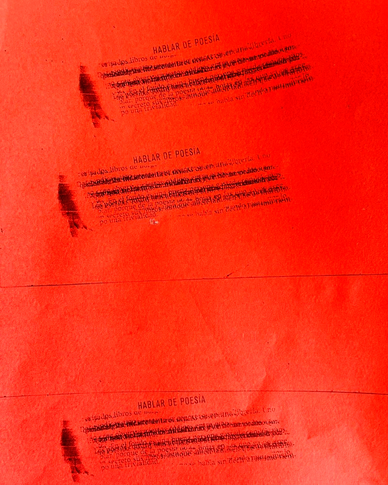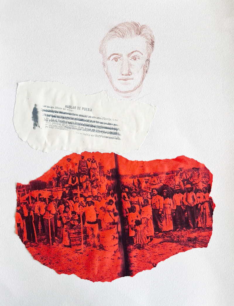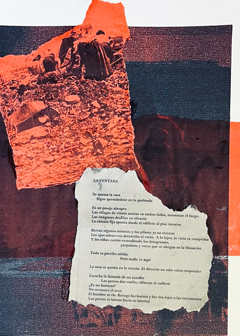 Poesía y gráfica conforman un modo de comprender una historia del arte chileno: la posibilidad de una lectura y una creación conjunta, la mirada de una experiencia política que abre la creación a través de sus dislocaciones. El impulso singular del poema con materiales a la mano como el arte povera; letra e imagen, dibujo y video, trazo y color, caligrafía y foto, cuaderno y libro, memoria y ficción, versos e imágenes de cordel, poesía vertical y horizontal. Constelaciones que orbitan en un campo de tensiones, que dan cuenta del lugar del arte como fisura a este país de vida administrada”.