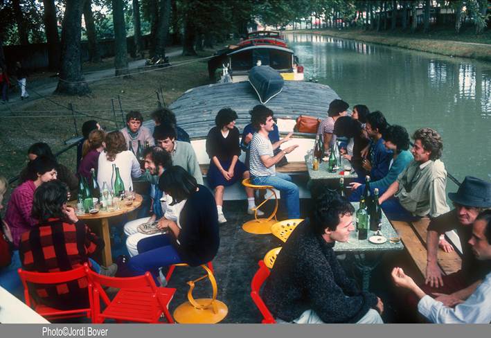 Pierre Orefice tenía un bar en una barcaza anclada próxima al río Garona en el centro de la ciudad. Este era uno de los lugares preferidos para el encuentro de artistas que en ese momento interconectaban lenguajes del circo, la música, las artes visuales, la fotografía y el teatro, generando un movimiento que amerita ser recordado y gracias al cual este texto pudo encontrar las imágenes tomadas por Jordi Bover, fotógrafo catalán que ha persistido hasta hoy en el registro del arte de la calle.