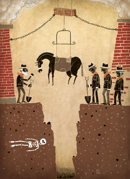 Baldomero Lillo percibe un extractivismo común en la mina, con la tierra y los vivos. Pero distingue lo que le ocurre al subsuelo respecto de los seres biológicos. Hermana el destino de los mineros con el caballo, porque en ambos se ha erosionado y desgastado la espontaneidad, potencialidad e inteligencia animal. Se los ha vuelto inválidos.