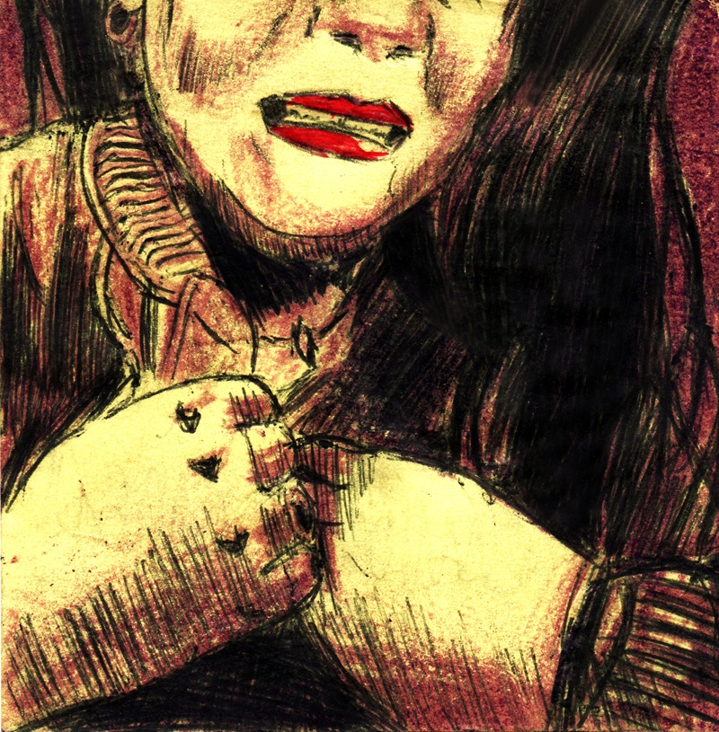 El camión reanuda su marcha. El Pedro, sentado en el asiento del copiloto, le habla al conductor y este lo escucha sin cambiar su expresión seria, apenas respondiendo sí o no. En un momento el tipo enciende un pito y lo fuma casi solo. Después, sin dejar de conducir, saca una bolsita de falopa y le dice al Pedro que arme unas líneas. Yo los miro, pero no digo nada. El Pedro jala con el conductor, sin ofrecerme, luego pasa el filtro de un cigarro por los restos de polvo blanco y lo prende. Sus voces me adormecen poco a poco hasta que el camión frena de golpe y salgo disparada hacia adelante.