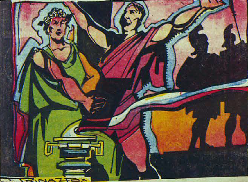 La apariencia que tenía le hizo fácil el disimularse. Syrus v Petronio llevaron por turno el pequeño saco de cuero que contenía sus efectos y los denarios para gastar. Durmieron al aire libre. Vieron brillar tristemente en la noche las pequeñas lámparas de los monumentos fúnebres. Comieron pan agrio y aceitunas ablandadas. No se sabe si robaron. Fueron magos ambulantes, charlatanes de campaña y compañeros de los soldados vagabundos. Petronio desaprendió enteramente el arte de escribir, en cuanto pudo vivir la vida que había imaginado. Tuvieron jóvenes amigos traidores, que quisieron mucho, y que los abandonaron a las puertas de los municipios, después de haberles sacado hasta el último as. Hicieron todas sus juergas con gladiadores evadidos. Fueron barberos y muchachos de estufa. Durante varios meses, vivieron de las ofrendas funerarias de alimentos, que sacaban de los sepulcros. Petronio aterrorizaba a los viajeros por su ojo descolorido y su negrura que parecía maliciosa. Desapareció una tarde. Syrus pensó volverlo a encontrar en una celda grasienta, donde ambos habían conocido una muchacha de cabellera enredada. Pero un engrasador ebrio le había hundido un largo cuchillo en el cuello, mientras ambos descansaban a campo raso, sobre la escalinata de una bodega abandonada.