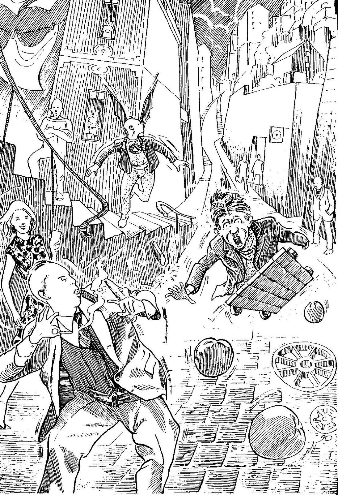 ¿Cuero duro o carne de perro? Ni idea, porque la consigna era resistir a toda costa. Si la Dictadura clausuró las escenas, nosotros las reabríamos sin permiso; si no existían incentivos del Estado para el cultivo y desarrollo de las Artes, nosotros autogestionábamos nuestras ediciones, dando la cara hasta poner el ojo en tinta. Además, que las temáticas ambientalistas, indígenas, de género, existenciales y metafísicas que permearon toda nuestra producción, no las encontrábamos expuestas en el cómic de corte industrial que se estilaba por esa década. Entonces, crear bajo esas condiciones fue pista de despegue y aterrizaje forzoso de nuestra aventura editorial. Aquí extraigo del recuerdo esos paseos por callejones y miradores porteños, que servirían como verdaderas travesías de arte o academias peripatéticas, siempre en íntima conexión con la geografía urbana y los contextos socio-culturales en que se realizó CATALEJO. Lo mismo, las onces reponedoras que nos brindaba la esposa alemana de Pereira, compartiendo con sus hijos y otros artistas del exilio interno junto a permanentes visitas del extranjero a su casa-taller.